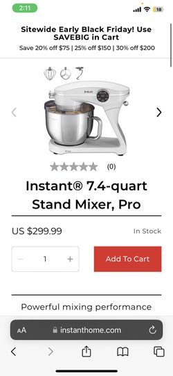 Instant Pot 7.4qt 10 Speed Stand Mixer Pro - Pearl White: Aluminum & Stainless Steel, 600W, Dishwasher-Safe Parts$200Los Angeles, CA
