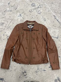 Harley Davidson Womens L Full Zip Leather Jacket Studded Brown Biker Riding$450San Diego, CA