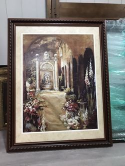 European Twin Statue Flower Vintage Wood Frame Painting$50Gilbert, AZ