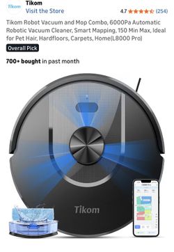 Tikom Robot Vacuum and Mop Combo, 6000Pa Automatic Robotic Vacuum Cleaner, Smart Mapping$110Pittsburg, CA