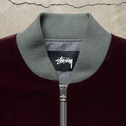 Stussy Streetwear Red/Wine Velvet Velour Full-Zip Bomber Jacket L$99Irwindale, CA
