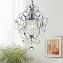 Silver Chrome Small Crystal Chandelier, 1-Light Small Chandelier Light Fixture, Adjustable Hanging Lighting, Small Chandelier for Bathroom, Entryway, $55Whittier, CA