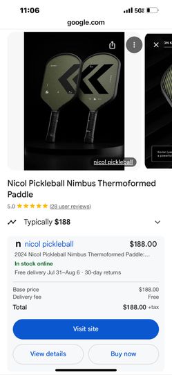 Nicol Pickleball Nimbus Thermoformed Paddle$75Windsor Hills, CA