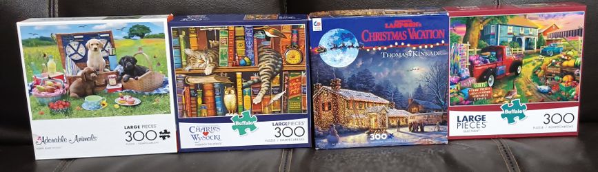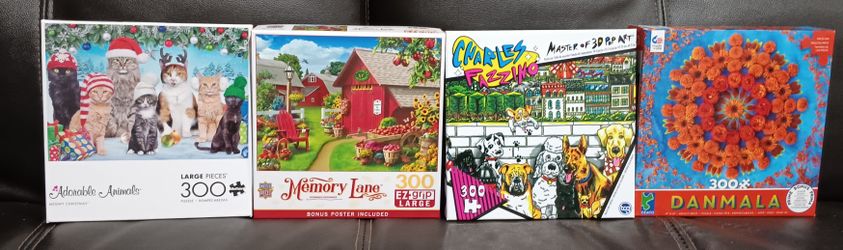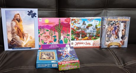 ASSORTED PUZZLES WITH PHOTO SHEET EXCEPT ONE 300 PIECES IN EACH. Want to sell as a lot, but $3.00 each$10Fontana, CA