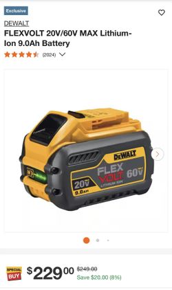 FLEXVOLT 20V/60V MAX Lithium-Ion 9.0Ah Battery$160Winchester, CA