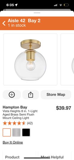 Hampton Bay Vista Heights 8 in. 1-Light Aged Brass Semi Flush Mount Ceiling Light$20Phoenix, AZ
