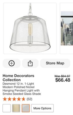 Home Decorators Collection Desmond 12 in. 1-Light Modern Polished Nickel Hanging Pendant Light with Smoke Seeded Glass Shade$35Phoenix, AZ