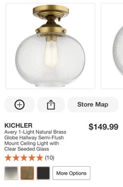 KICHLER Avery 1-Light Natural Brass Globe Hallway Semi-Flush Mount Ceiling Light with Clear Seeded Glass$80Phoenix, AZ