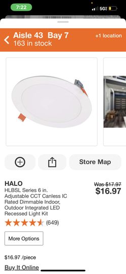 HALO BLD 6 in. White Integrated LED Recessed Ceiling Mount Light Trim 3000K Soft White$10Phoenix, AZ