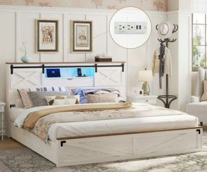 Sikaic LED farmhouse Wooden platform Bed Frame $350Banning, CA