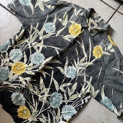 Tommy Bahama 100% Silk Floral Camp Shirt L Black Yellow Blue Tropical Aloha $25Huntington Park, CA