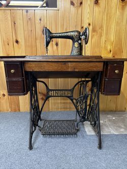 Antique 1915 Singer "Red Eye" Treadle Sewing Machine & Cabinet$300Stow, MA