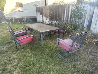 Outdoor Glass Table, 6 Chairs, Umbrella, Stand $100Livermore, CA