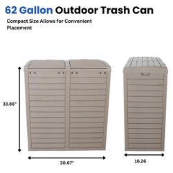 Rain Ready 62 Gallon Outdoor Trash Can – Waterproof Resin Bin w/ Lid & Drip Tray – Gray $109Diamond Bar, CA