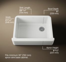 Kohler WhiteHaven 30” White Under counter Sink W/ Lg Apron 6487-0$450Torrance, CA