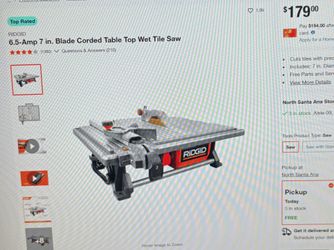 RIDGID 6.5-Amp 7 in. Blade Corded Table Top Wet Tile Saw$110Costa Mesa, CA