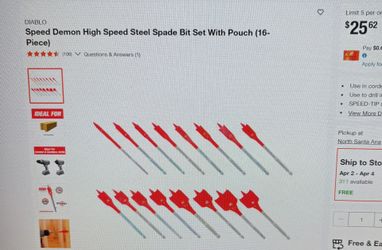 Diablo Spade Bit Set 16-Piece With Pouch$15Irvine, CA