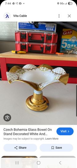 Czech Bhomia Glass Bowl On Stand White And Gold $100Los Angeles, CA