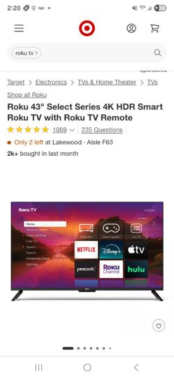 TV Sharp ROKU TV 43 Inch Smart Television With Wall Mount-no Remote Works With ROKU REMOTE App$50Tacoma, WA