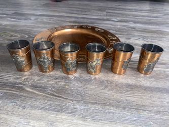 Vtg 1950s Victoria Taxco Mexico Copper/Silver Shot Glass & Tray Set$449Houston, TX