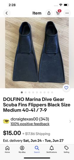 DOLFINO Marina Dive Gear Scuba Fins Flippers Black Size Medium 40-41/7-9$6Clovis, CA