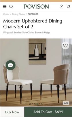 New Povision Modern Luxury Leather Dining Chairs Set of 2 Wingback Accent Chairs Beige & Brown $150$150Enterprise, NV