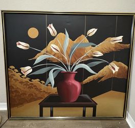 Large Framed Floral Still Life Painting – Red Vase, Mountain Landscape, Black & Gold Decor$80Jacksonville, FL