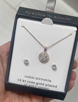 Sparkle Allure Cubic Zirconia 18kt Rose Gold plated 16" Necklace & Earrings$20Fullerton, CA