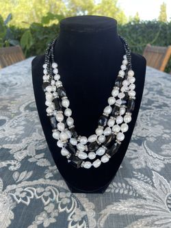 Black Rhinestone and Faux White Pearl Diamond-like Necklace 18 1/4” long$10Fullerton, CA