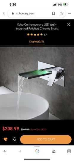 Koko Contemporary LED Wall-Mounted Polished Chrome Brass Waterfall Bathroom Sink Faucet B55$50Santa Fe Springs, CA