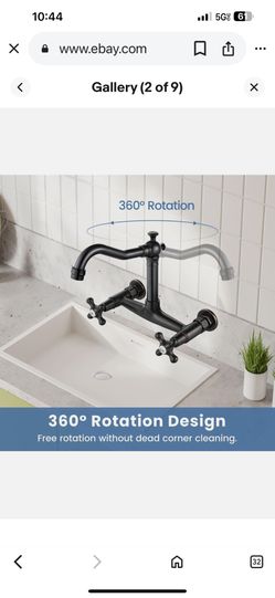 Wall Mount Kitchen Sink Faucet Wall Mounted Faucet 8 Inches Center Commercial Kink Tap 2 Handle Laundry Room Restaurant Black,K1$40Santa Fe Springs, CA