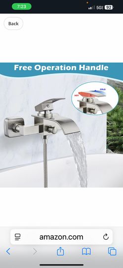 Wall Mount Bathtub Faucet with Handheld Spray Waterfall Tub Filler Single Handle Bathroom Tub Brushed Nickel C8 N $40$40Artesia, CA