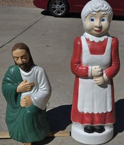 vintage 90's Christmas Illuminated Blow Mold Mrs Claus Nativity Jesus Joseph$125El Paso, TX