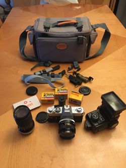 Canon FTb QL 35mm film camera. With a Vivitar 70-150mm f/3.8 manual focus zoom lens and a Vivitar 285HV Thyristor flash unit and everything in the pi$175Pembroke Pines, FL