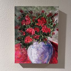 Original Still-life Red & Green Floral Painting on Canvas Signed Lainey Chenal$42Orange, CA