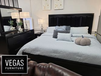 Black Upholstered king Bedroom Set w Dresser Mirror Nightstand$2,499Henderson, NV