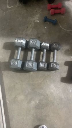 Weights (dumbbells + Ball) + free Hanger$30Arlington, TX