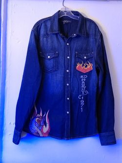 Ed Hardy Blue Snap Button Up Denim Shirt$30Queens, NY