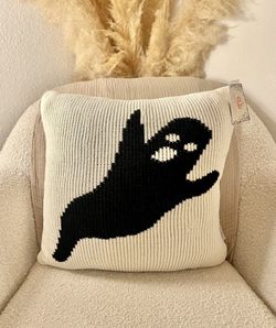 BRAND NEW W/ TAG + RARE Halloween Black & White Knitted Ghost Decorative Pillow$55Montebello, CA