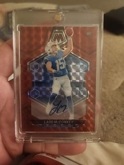 2024 Panini Mosaic Ladd McConkey Rookie Auto red Mosaic Prizm /199 Chargers$75San Diego, CA