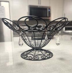 🌹 Gorgeous Large Ornate Black Footed Metal Wire Fruit Bowl with Stand Decorative Centerpiece with (4) Magnetic Glass Jeweled Attachments! $15Phoenix, AZ