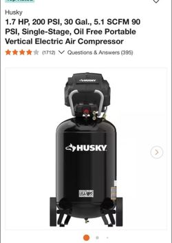 Husky 1.7 HP, 200 PSI, 30 Gal., 5.1 SCFM 90 PSI, Single-Stage, Oil Free Portable Vertical Electric Air Compressor Like New $320Los Angeles, CA