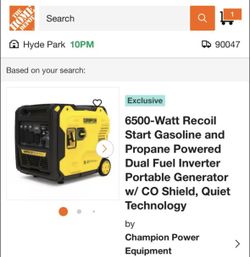 Champion 6500-Watt Recoil Start Gasoline and Propane Powered Dual Fuel Inverter Portable Generator w/ CO Shield, Quiet Technology like new $820Los Angeles, CA