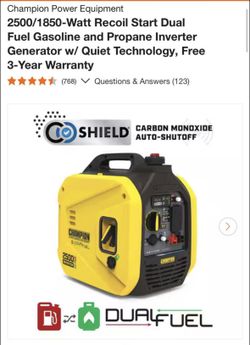Champion 4500/3250-Watt Recoil Start Gasoline/Propane Powered Dual Fuel Inverter Generator with Quiet Technology and CO Shield like new$630Los Angeles, CA