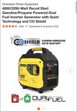Champion 2500/1850-Watt Recoil Start Dual Fuel Gasoline and Propane Inverter Generator w/ Quiet Technology, new 0 hours slvg. As i$470Los Angeles, CA