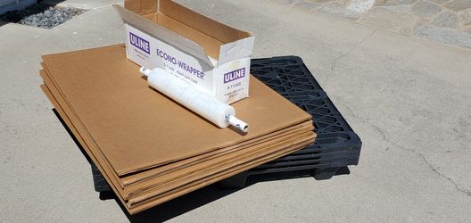 Plastic Export Pallets with Corrugated Pads & Uline Heavy Duty Wrapper - Bundle $100San Marcos, CA