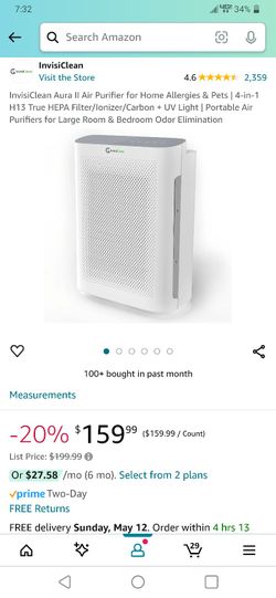 InvisiClean Aura II Air Purifier for Home Allergies & Pets | 4-in-1 H13 True HEPA Filter/lonizer/Carbon + UV Light | Portable Air Purifiers for Large $75Burbank, CA