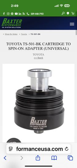 Baxter TOYOTA TS-501-BK CARTRIDGE TO SPIN-ON ADAPTER (UNIVERSAL)$189Chula Vista, CA