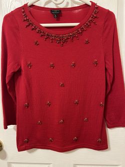 Red Party Sweater With Red Jewel Scoop Neck And Jewels On Front Size PM$15Surprise, AZ