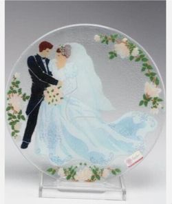 Peggy Karr Glass Studio Signed Fused Glass Wedding Bride & Groom 11" Plate NWB$25Cedar Park, TX